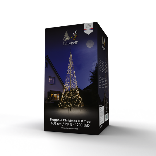 Deze vlaggenmast kerstboom van 6 meter is te bestellen in drie verschillende lichteffecten. Warm wit, warm wit met twinkle en multicolor. Wil je een gezellige uitstraling in jouw voor- of achtertuin? Dan is een Fairybell® kerstboom van 6 meter met warm wit lichteffect precies wat je nodig hebt. Liever een fonkelend effect? Kies dan voor de boom voorzien van warm wit met twinkle effect. Hierbij knipperen 10% van de LED-lampes op sfeervolle wijze voor dat échte kerstgevoel. Maar wil je écht uitpakken? Dan steel je met de multicolor kerstboom helemaal de show. Een beetje magie, voor jezelf en voor een ander. Want ook de rest van de buurt kan genieten van deze sfeervolle kerstverlichting.