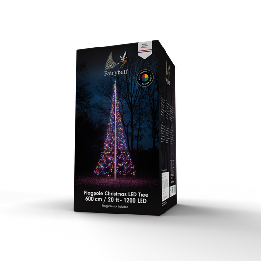 Deze vlaggenmast kerstboom van 6 meter is te bestellen in drie verschillende lichteffecten. Warm wit, warm wit met twinkle en multicolor. Wil je een gezellige uitstraling in jouw voor- of achtertuin? Dan is een Fairybell® kerstboom van 6 meter met warm wit lichteffect precies wat je nodig hebt. Liever een fonkelend effect? Kies dan voor de boom voorzien van warm wit met twinkle effect. Hierbij knipperen 10% van de LED-lampjes op sfeervolle wijze voor dat échte kerstgevoel. Maar wil je écht uitpakken? Dan steel je met de multicolor kerstboom helemaal de show. Een beetje magie, voor jezelf en voor een ander. Want ook de rest van de buurt kan genieten van deze sfeervolle kerstverlichting.