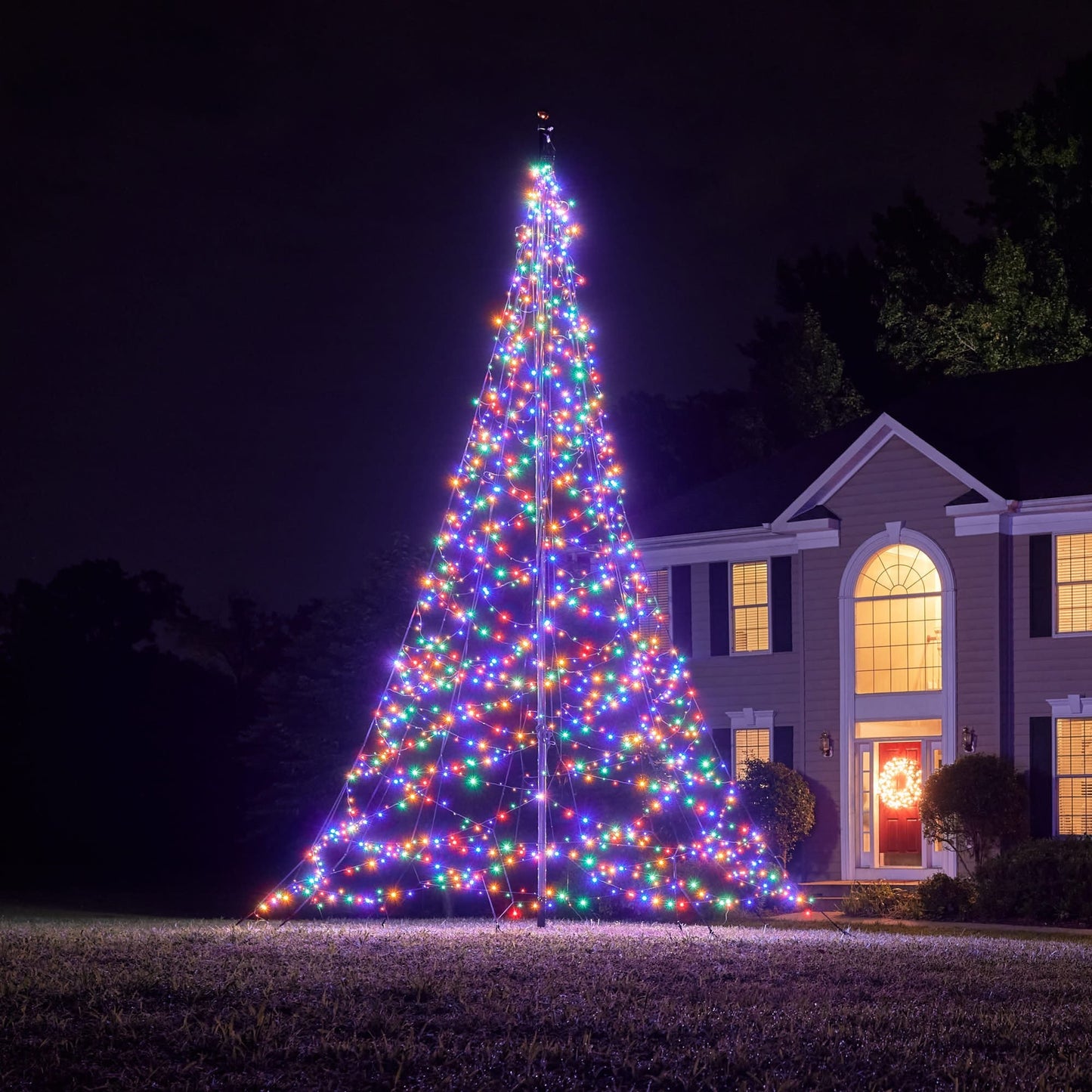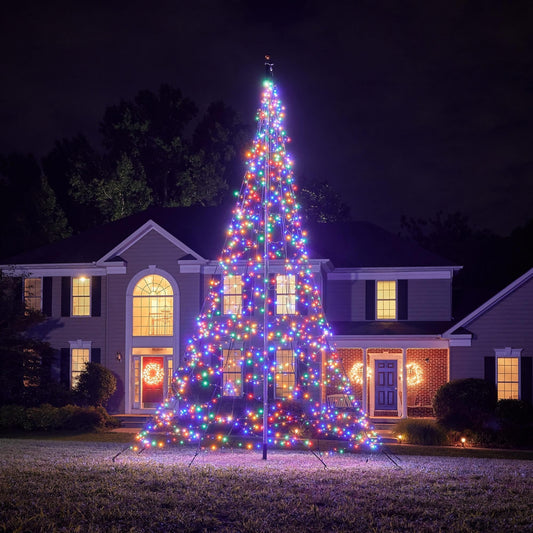Deze 6 meter hoge vlaggenmast kerstboom is voorzien van 1200 energiezuinige LED-lampjes en is speciaal ontworpen voor in je vlaggenmast. Door de innovatieve plaatsing van de lampjes en het prachtige lichteffect ontstaat er een sfeervolle kerstboom rondom je vlaggenmast. Hoe leuk is het dat je deze elke avond als eerste ziet zodra je thuis komt of ‘s avonds naar buiten kijkt?