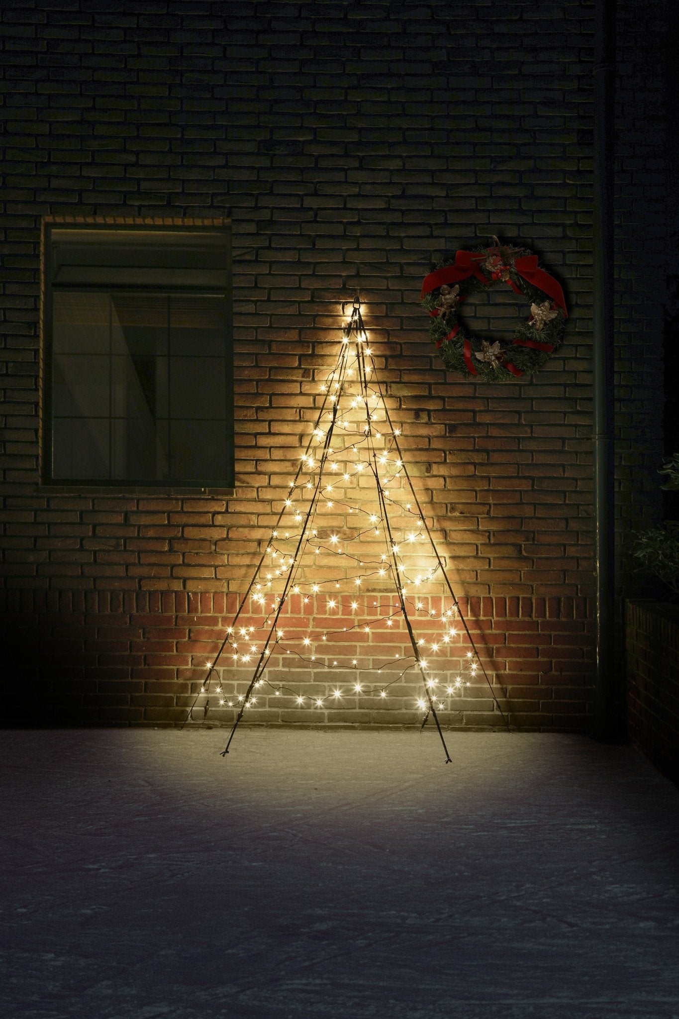 Deze indrukwekkende Muurkerstboom van Fairybell® heeft een hoogte van 2 meter, is uitgerust met 180 energiezuinige LED-lampjes en kan tegen iedere gevel van je huis, bedrijfspand of schuur worden geplaatst. De fraaie muurdecoratie is perfect voor als je minder ruimte om je huis hebt, maar kan ook uitstekend worden gebruikt om kale muren op te fleuren tijdens de donkere winterdagen. Een feest voor ieder kind! Dankzij de innovatieve positionering van de lampjes en het warm witte lichteffect, ontstaat er een prachtige Kerstboomvorm.